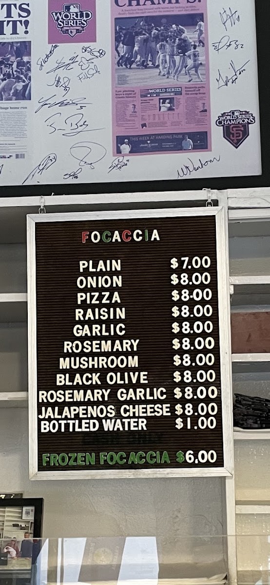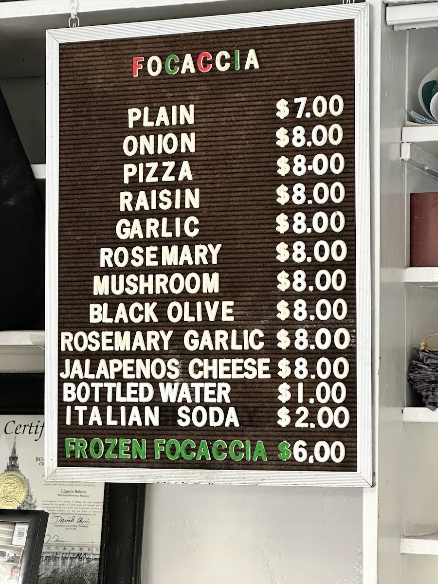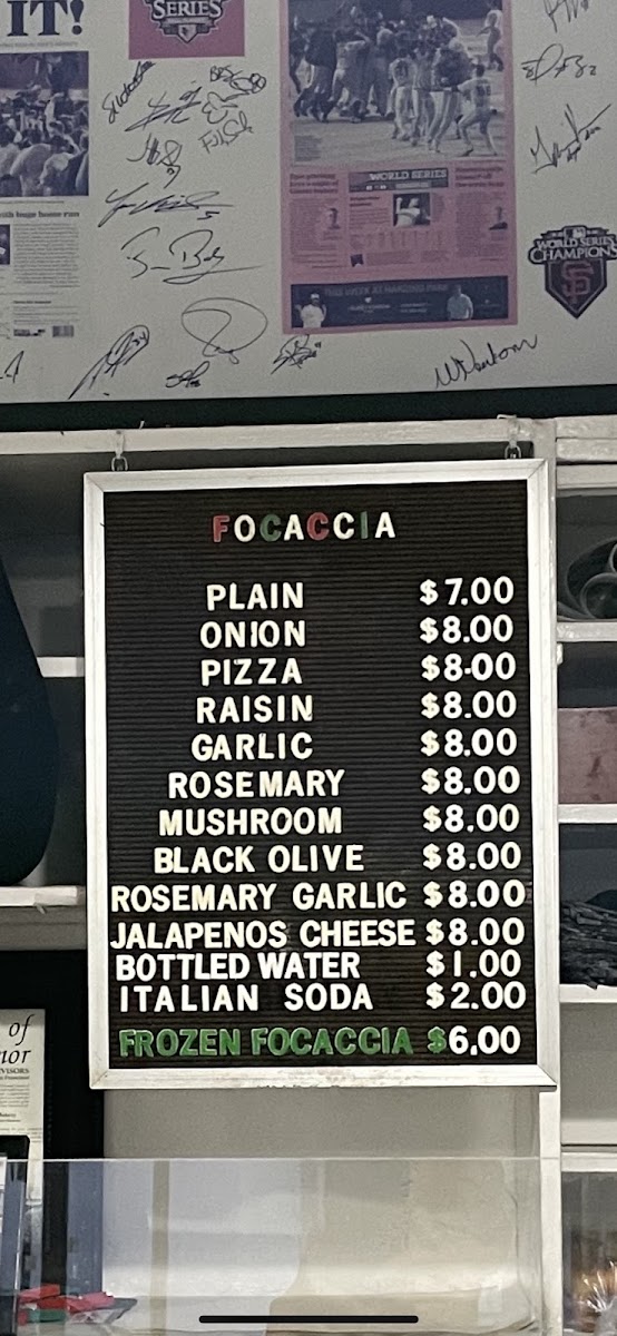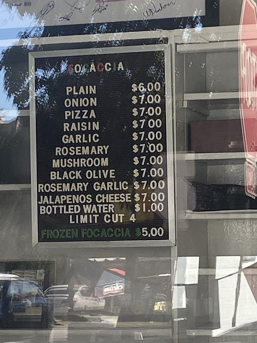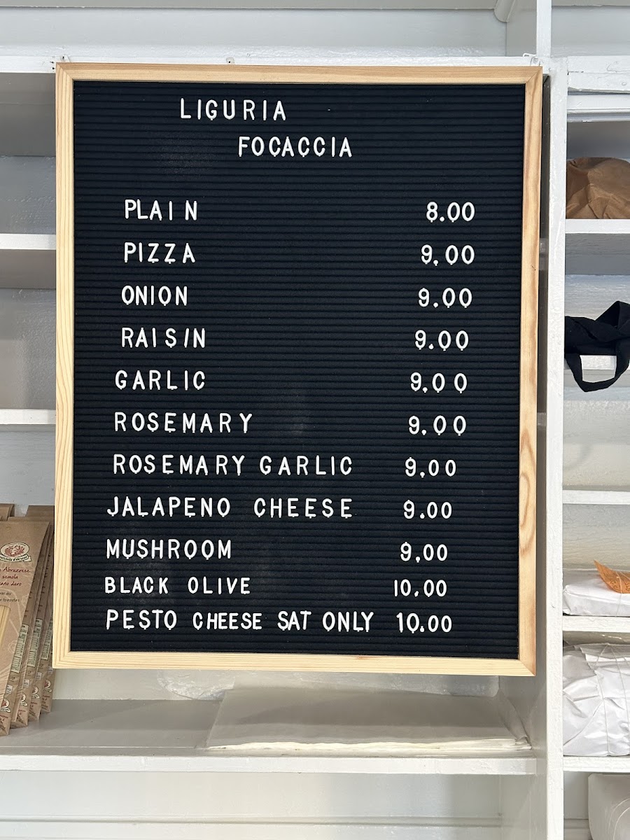 - Frozen Items: Frozen focaccia available for purchase to be prepared at home.
