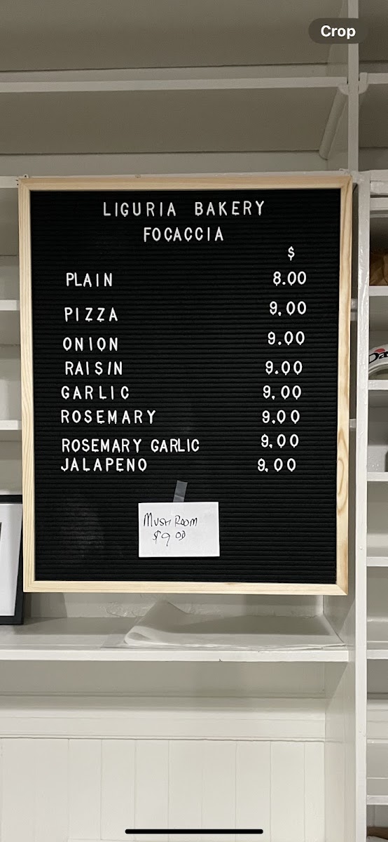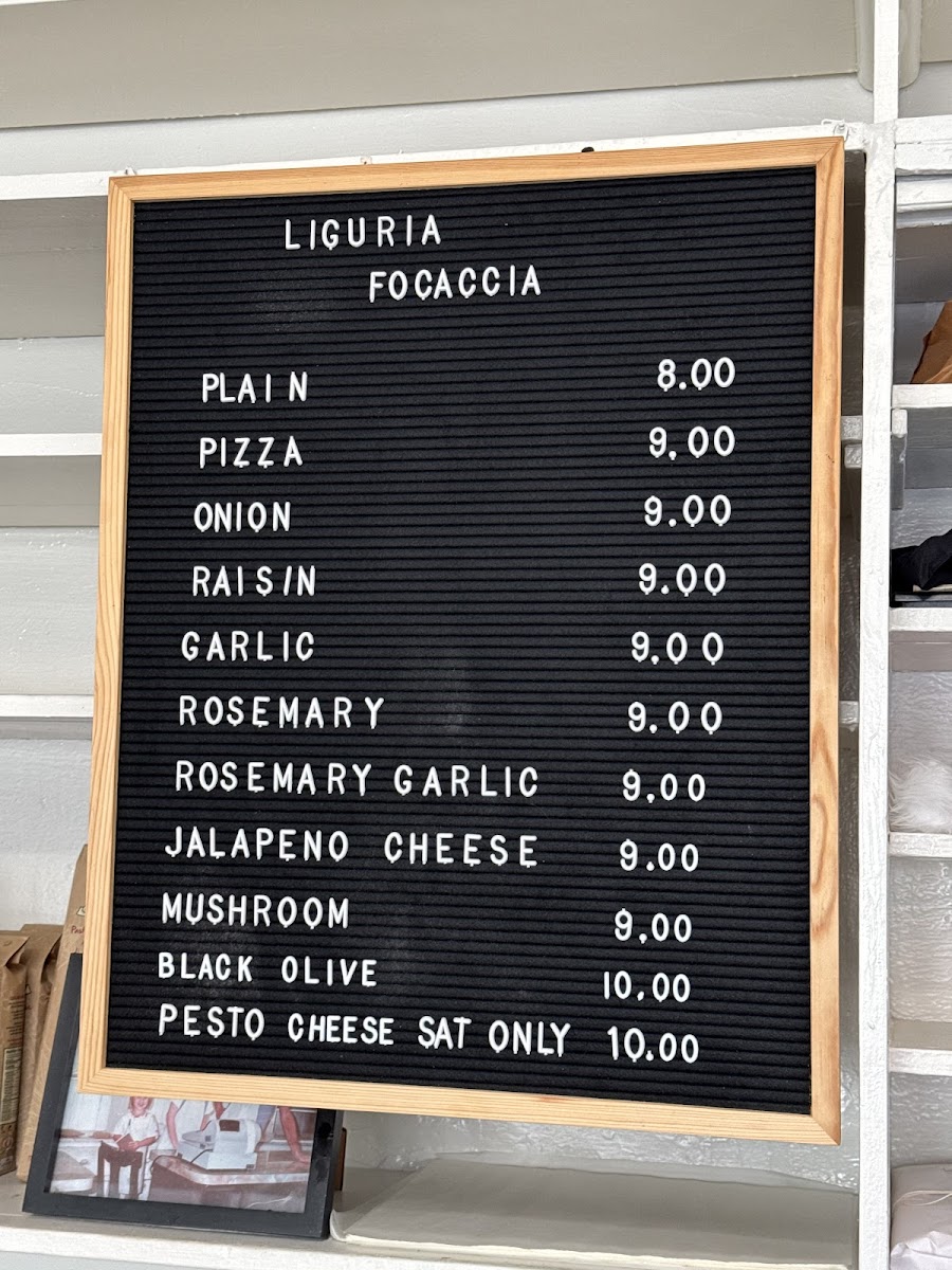 Liguria Bakery Menu
